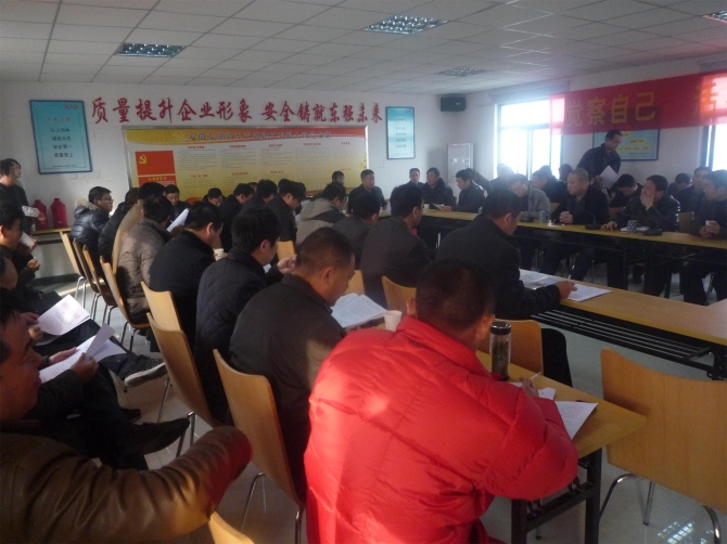 12月14日上午,包河區住建局在我公司召開了轄區內各混凝土企業主要負責人參加的2014年春節前攪拌車交通安全集中整治工作布置會。本次會議由丁傳富副局長主持,市城鄉建委建管處王榮村處長、區安監局蔣浩副局長出席了會議。