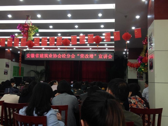安徽省建筑業在2016年05月01日起營業稅改為增值稅,安徽省建筑業協會砼分會舉辦營改增宣講會。我公司安排財務及相關管理人員參加學習。