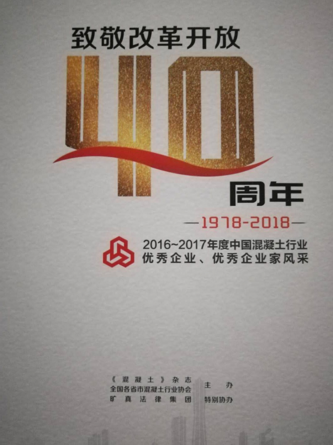2018年10月21日至24日我公司領(lǐng)導(dǎo)赴浙江參與《2018年中國混凝土年會暨新時代混凝土行業(yè)綠色高性能發(fā)展論壇大會》,并在會上被評為2016——2017年度中國混凝土行業(yè)優(yōu)秀企業(yè)。公司積極參與行業(yè)大會,把握混凝土行業(yè)新技術(shù)、新發(fā)展、新導(dǎo)向,與時俱進(jìn),不斷創(chuàng)新。
